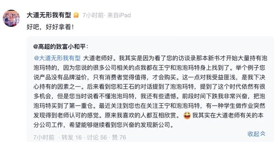 有投资者说之前趁泡泡玛特股价下跌时重仓买入,段永平回复称:好吧,好好拿着!